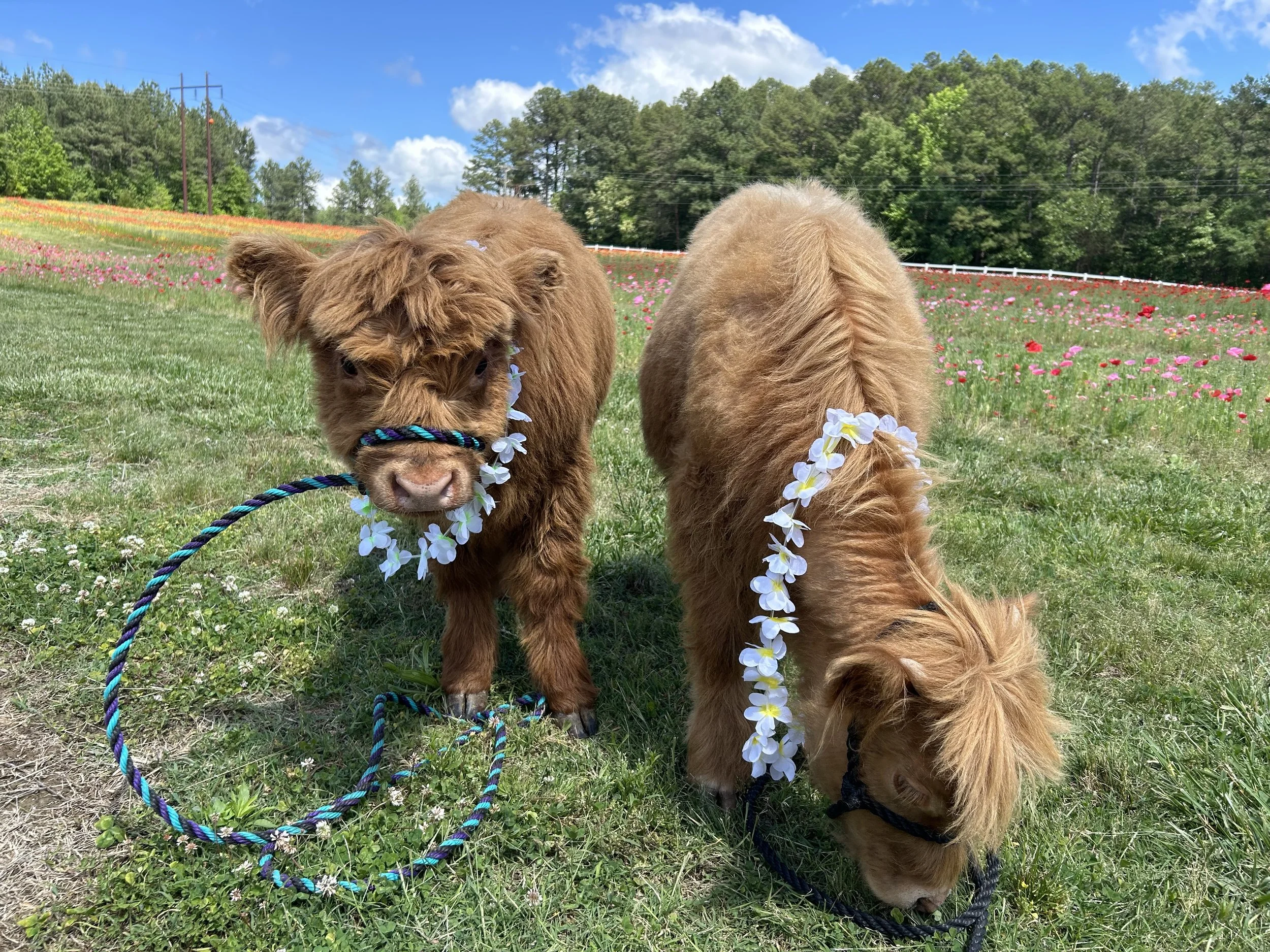 Make this Mother's Day Weekend unforgettable with the cutest experience featuring Fancy and Maverick, two of the most adorable baby highland cows. Join us as you cuddle and love on these cuties amongst a beautiful backdrop of our poppy fields, bursting with vibrant blooms. Reserve your spot now for an unforgettable Mother's Day celebration!